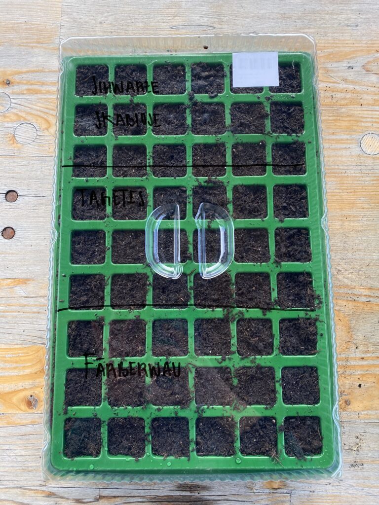 Auch die ersten Setzlingsschalen wurden angesät. Jetzt heisst es abwarten und hoffen, dass bald alles keimt und wächst!